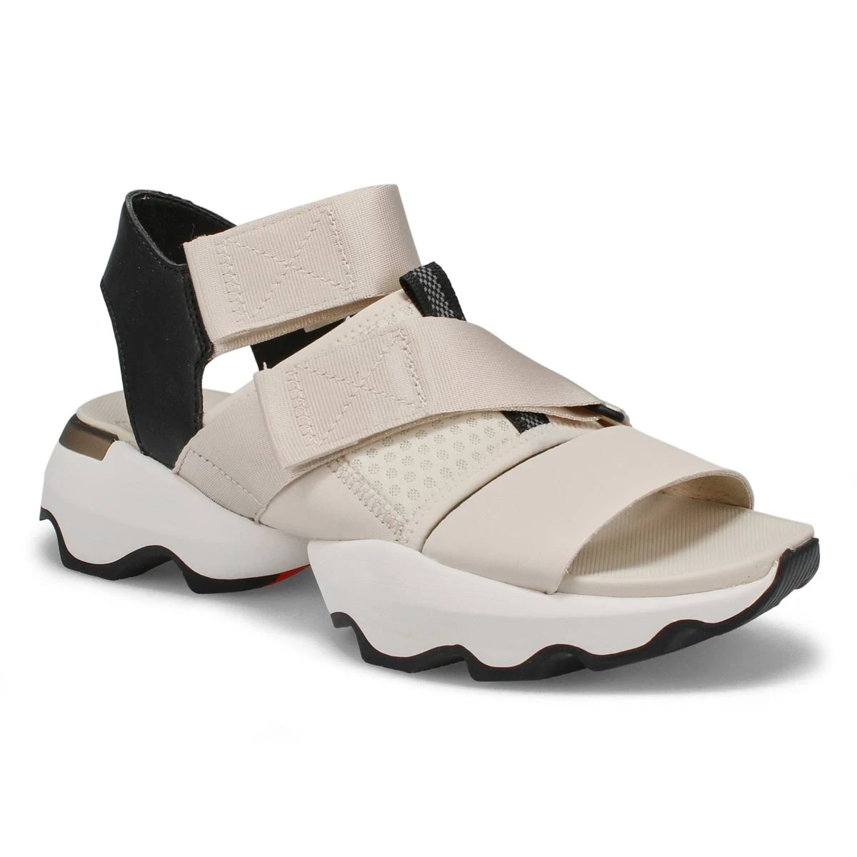 The ultimate sandal for making summer moves, the Kinetic Impact white/ black from Sorel blends fashion and function. Its casual silhouette features a lightweight leather and mesh upper for warm summer days, cushioned by a PU-like EVA footbed. The Kinetic Impact oversized sole takes comfort to a new level, mile after mile.