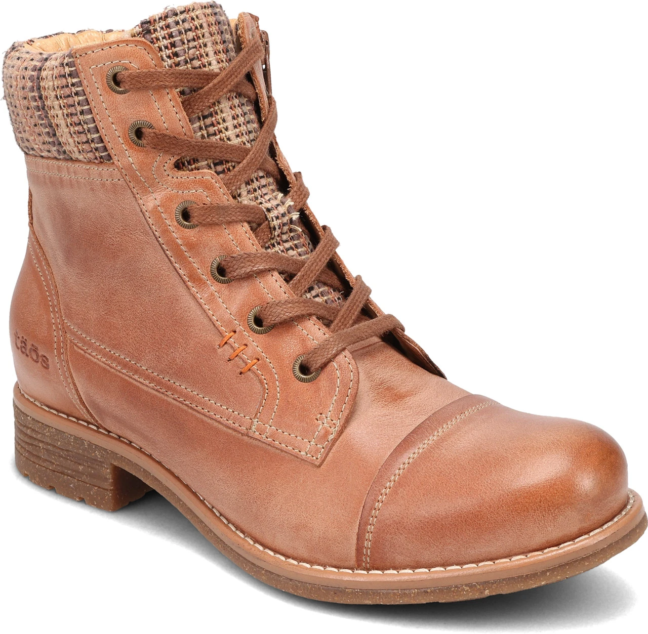 Englin’s Fine Footwear presents the women’s ‘Captain’ from Taos. Captain is a new European cap toe boot from Portugal that has a distinct look with rich leather uppers & woven textile trim. Lace up adjustability along with an inside zipper, make these easy on/easy off. The ultimate footbed that is leather covered dual density polyurethane with arch & metatarsal support for all day comfort. the durable, flexible rubber outsole provides stability as well as durability for all of the places Captain will take you.